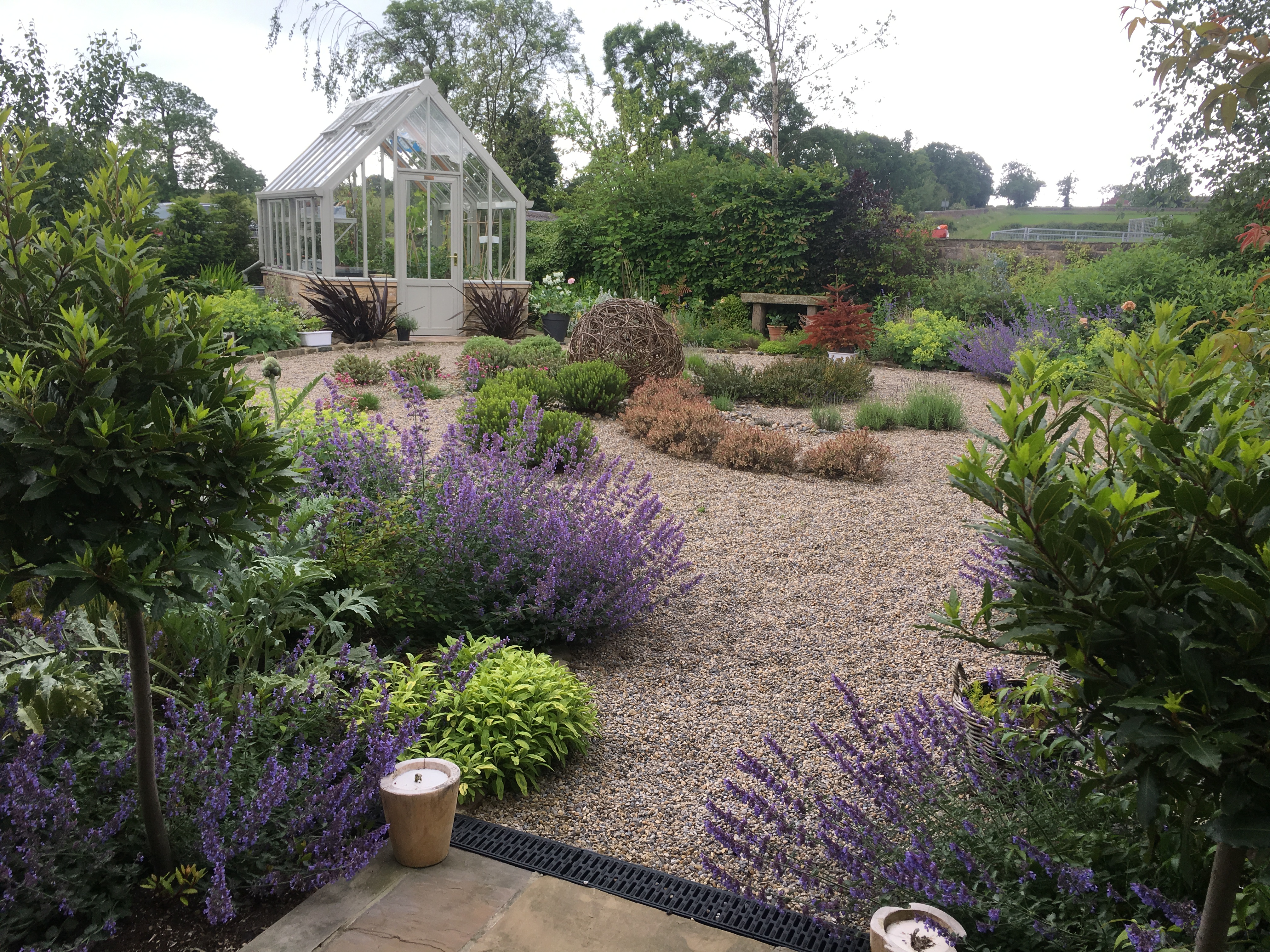 Using gravel paths from a circular hub of stone we gave access